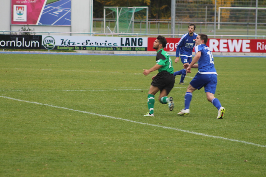 Kurz vor der Pause konnten die Hausherren, wenn vielleicht auch etwas überraschend, auf 1:2 verkürzen. Den sehenswerten Angriff, bei dem Weinmann den auf rechts durchgelaufenen Röckelein mit einem schönen Zuspiel in den Rücken der Gästeabwehr schickte, leitete dieser wiederum direkt auf den in der Mitte lauernden Köberlein weiter und wurde letztendlich vom Burgebracher Angreifer vollendet (41.).